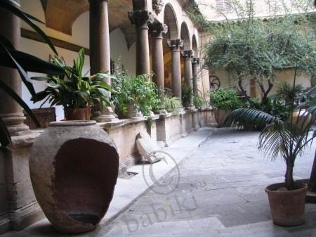 Особого внимания заслуживает внутренний дворик, он типично средиземноморский, с белыми стенами, колоннами, ажурной решёткой ведущей наверх лестницы, с пальмами в огромных глиняных горшках (вообще, пальм в городе очень много, что не удивительно, ведь именно они – главные действующие лица в этом городе, Пальма де Майорка!!!). Следует отметить, что окна многих номеров выходят как раз на этот дворик (каменный мешок, но зато как оформлен…).