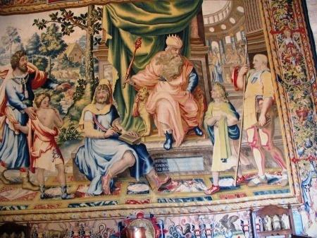 Из этого дворика можно пройти во Дворец Королевы. Прекрасные средневековые портреты и гобелены на стенах, и вообще, сама эта кажущаяся простота и скромность (каменные стены, деревянные стулья) никак не вяжется с нашими представлениями о жизни королей (если вспомнить роскошь Эрмитажных залов…).