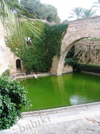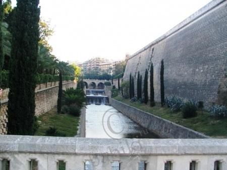 Если продолжать двигаться далее, почти в самом центре вы увидите массивные каменные стены, похожие на стены средневекового замка – это Las Muradas — городские стены. Они такие широкие, что по ним можно гулять, так как наверху проложены дорожки. А какой оттуда открывается вид! К сожалению, вместо архитектурных особенностей столицы острова, мы опять наслаждались морем мерцающих огней, так как попали на городские стены только ночью. Вдоль них течёт река, заключённая в каменное русло – Канал города Пальма де Майорка. Виды – исключительные, на своём пути реке приходится преодолевать несколько порогов – водопадиков, к тому же, мост (по нему проходит улица Ронда де Мигхорн) создаёт впечатление типично средневекового пейзажа.