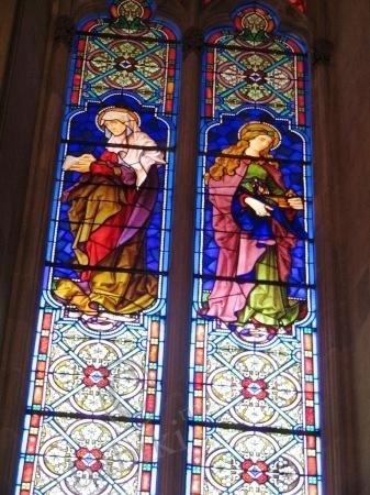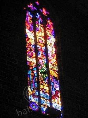 Поражают цветные витражи собора и его огромные своды. Говорят, к созданию внутреннего убранства приложил руку сам Гауди.