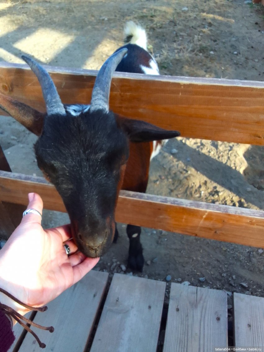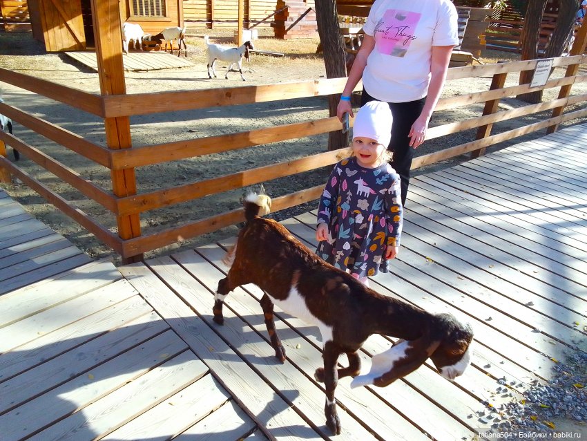 Если говорить про этих козочек, то тут никто не бодал посетителей, только готовы были козочки обниматься и принимать ласки и угощения. А в вольере они поиграли между собой, словно на показ. Посетители видео снимали, как они резвились. А я только фото делала.