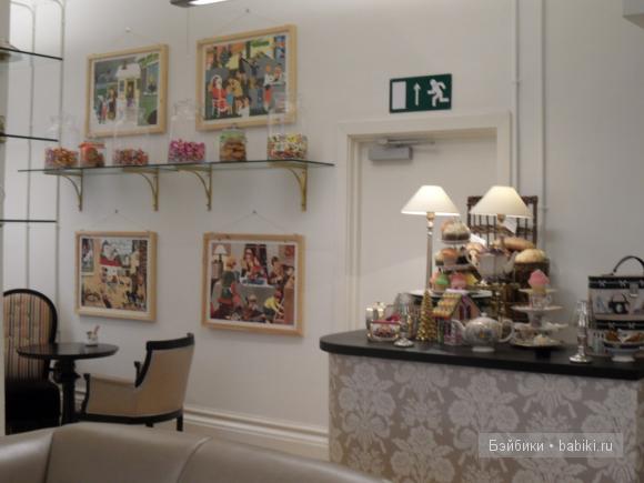 Пришли к кафе за полчаса до назначенного времени, там довольно строго, опоздал – бронь снимается, поэтому у стойки администратора стоит порядочная очередь из желающих занять ваше место. Но едва увидев витрину, дочь попросила зайти внутрь – кафе начинается с магазина – и каких только игрушек там нет!!! Почти настоящие обезьяны и распахивающий огромную пасть крокодил невольно приковывают внимание. Руки ребёнка непроизвольно тянутся к игрушкам и … доставайте денежки, дорогие родители. Открою вам маленький секрет. Мы удержались и ничего не купили (наверное, это потому, что незадолго перед кафе мы сходили в пятиэтажный магазин игрушек Хемлис, где был куплен набор для декорирования ногтей с заверениями, что это самая-пресамая последняя купленная в Лондоне игрушка. «Хи-хи!» — сказал мой внутренний голос.)