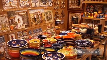 Очень понравился магазин керамики. От разнообразия представленных изделий разбегаются глаза. Сделала несколько снимков, а потом последовал крик продавца, оказывается, фотографировать нельзя. Жалко им, что ли? Наверное, надо было что-нибудь у них купить, тогда разрешение было бы получено. Кстати, в некоторых мастерских и магазинах висят на видном месте объявления на нескольких языках, и для особо неграмотных – значки в виде перечёркнутых фото- и видеокамер. Чтобы обойти всё, необходимо не менее 3-4 часов и идти лучше против движения масс – с конца экспозиции – так встречается меньше народа – просто до конца доходят не все.
