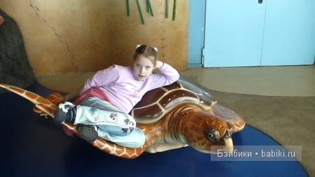 На втором этаже были всякие интерактивные игры для детей, можно посмотреть на рыбок, поиграть в водолаза, побывать внутри подводной лодки и в пасти у кита, сложить мозаику, посидеть на спине у огромной черепахи или оседлать жабу. В общем, детям в аквариуме интересней, чем взрослым.