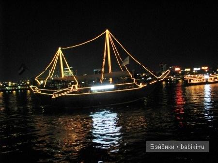 В один из вечеров купили экскурсию под названием «Ужин на арабской лодке» (у «Альфа-Турс»). Как оказалось, существует ещё ужин на французской лодке, который отличается строгостью дресс-кода и заказом блюд по меню (на лодке «Доу», именно так называется арабская лодка, предлагается шведский стол).