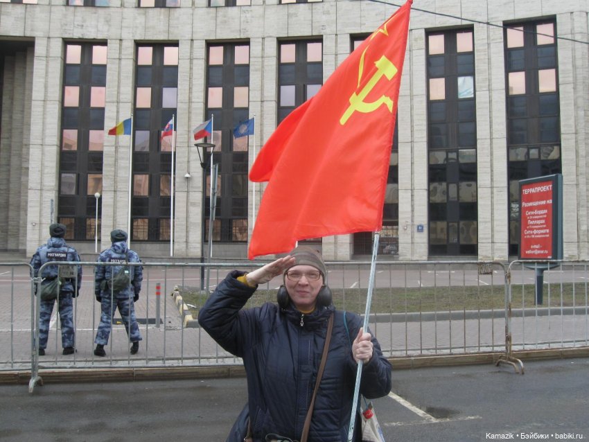Заканчивался какой то митинг, я мимо проходила. Попросила с флагом сфотографироваться.