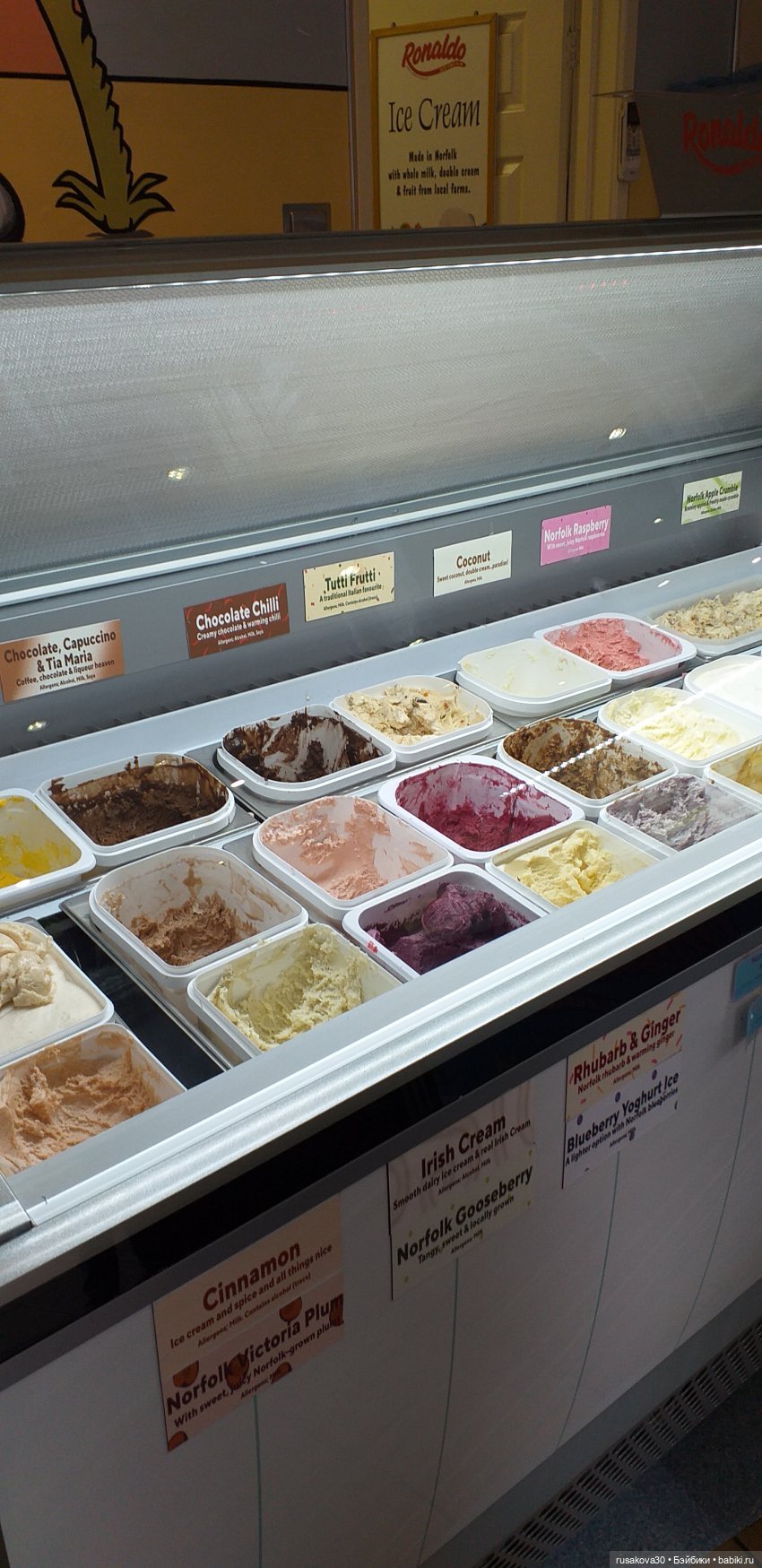 Вот, нашла фото магазина с мороженым, очень большой выбор. Но магазин не в нашем городе, а в Шерингеме.Это маленький городок у моря.