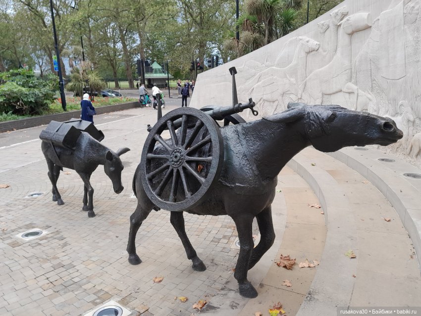 «На мой взгляд самый пронзительный по силе воздействия памятник в Лондоне. Автором памятника является скульптор Дэвид Бекхауз. Надписи на стене гласят: „Этот монумент посвящён всем животным, которые служили и погибли...“ И самое тяжелое — »У них не было выбора". Там есть ещё и собачка и слон на стене… По самым скромным подсчётам только в Первую мировую войну и только у британцев погибло более 8 000 000 лошадей и мулов! Сложно что то ещё добавить. До слёз..."