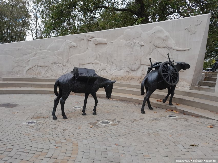Оказалось это памятник животным, которые погибли на войне.