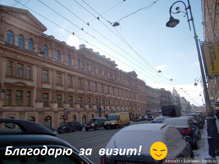 … Красивый проспект… Будет возможность приеду и загляну на этот проспект, очень мило смотрится… А я вот не помню улицу где гостиница была для авиапассажиров, я там два дня жила.… А театр «Сатиры и юмора» Образцова ещё жив? Он вроде был недалеко от Пассажа… И на метро так и не прокатились в Питере… Я помню что оно не такое красивое как Москве, но хотелось заглянуть, но так и не зашли :)… Может всё же ещё раз получится съездить, но не надеюсь :)
