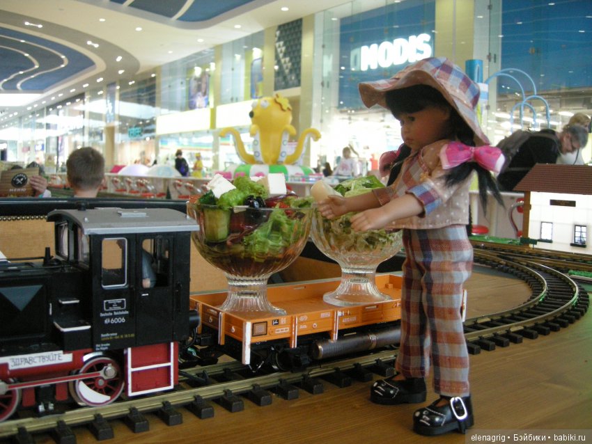 Мы побывали в кафе, где еда приезжает на поезде. Внуки были в восторге!