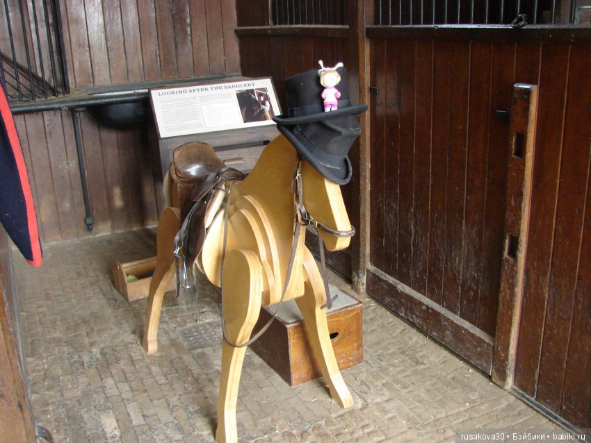 Есть маленькие комнатки в конюшне, сделанные специально для детей.Там можно посидеть на деревянных лошадках, что мы с мужем и сделали.Ну и Машка тоже не отстала!