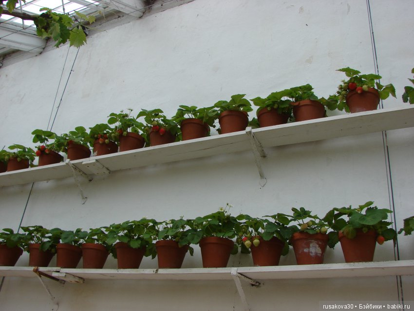 Это виктория в горшочках.Растет в теплицах, уже есть ягоды.