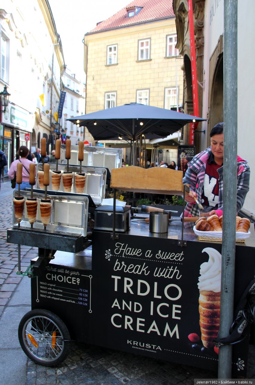 Забыла ещё добавить, попробовала Трдельник прямо горячий с ароматной хрустящей корочкой, но без всяких кремов. Ах, какая вкуснятина!!! Потом невозможно было мимо проходить, они там на каждом шагу.