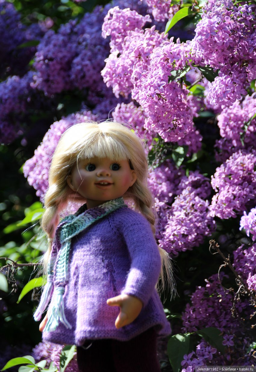 Жаль, что не удалось сделать фотографии кукол с сиренью в сиреневых нарядах. Хотя вот одна получилась