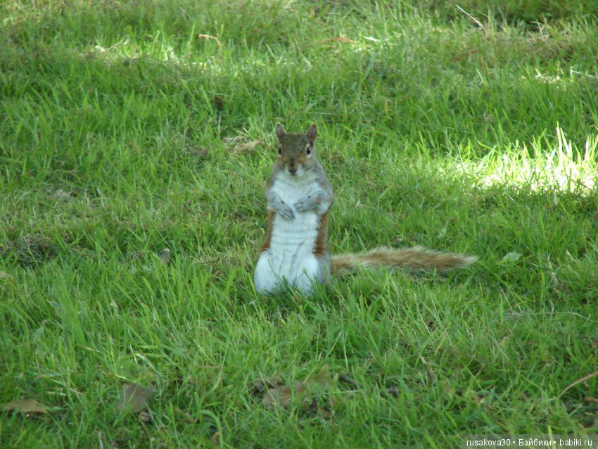 У нам тоже в парке белки бегают. Но они не такие доверчивые, как в Англии.