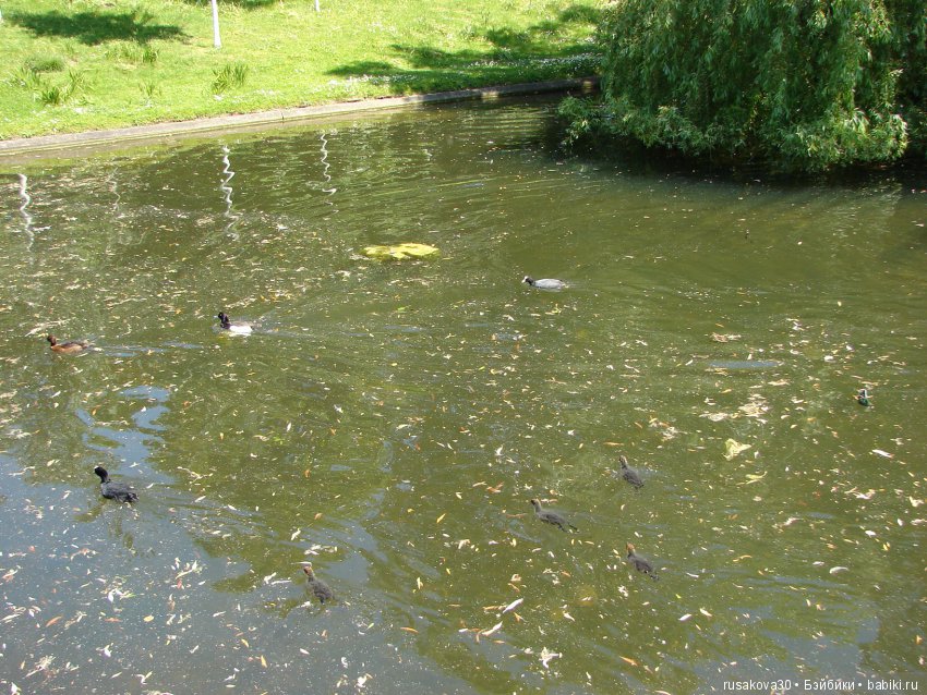 Самое шикарное — когда ты кидаешь утке кусок булки в воду, а из воды выпрыгивает огромная рыбина и перед самым уточьим клювом хапает этот кусок ))) Оскорблённая утка орала на весь парк, пока не получила от меня ещё кусок )))