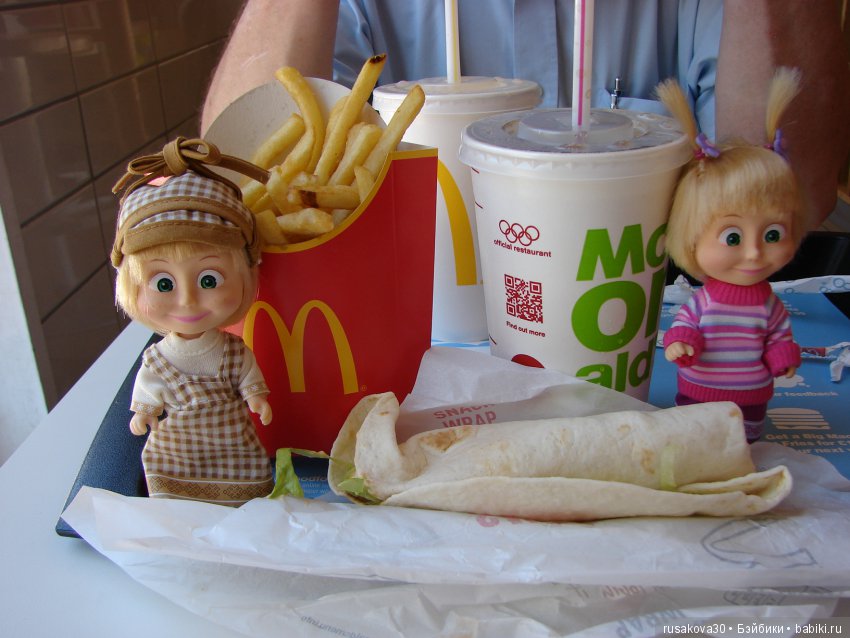 И тут мы увидели кафе макдональдс, Машки дружно закричали — мы голодные!