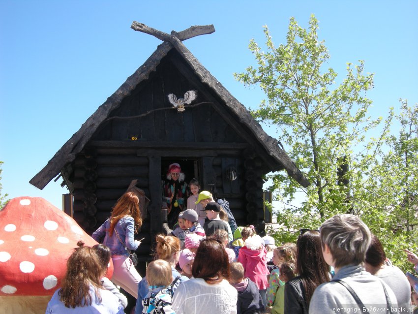 Нас встретила кикимора, загадывала загадки.Потом вышла баба яга, дверь открылась только после того как мы опять разгадали загадки.Баба яга запустила нас во двор, двор был очень чистый и ухоженный, много цветов.Потом кикимора угостила нас пирожками, напоили чаем и взрослым налили наливочки.Ну и конечно развлечения, было очень весело.Баба яга каждому подарила по рукавичке.Ну а детки воспользовались моментом и давай фотографироваться.И даже бабы яги не побоялись.Это было самое лучшее приключение.Даже на корабле дети долго вспоминали бабу ягу и сказали что она совсем не страшная.