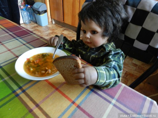 Наш Айдарчик тоже любит покушать. Суп фасолевый — тоже русская кухня. Обожаю готовить и угощать всех.