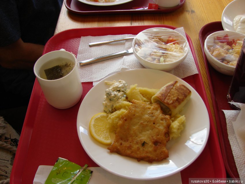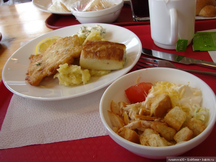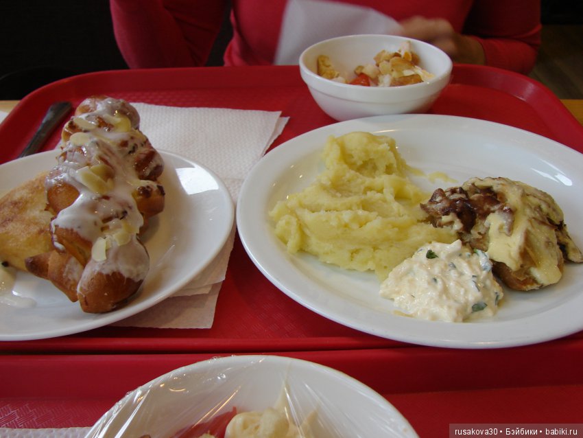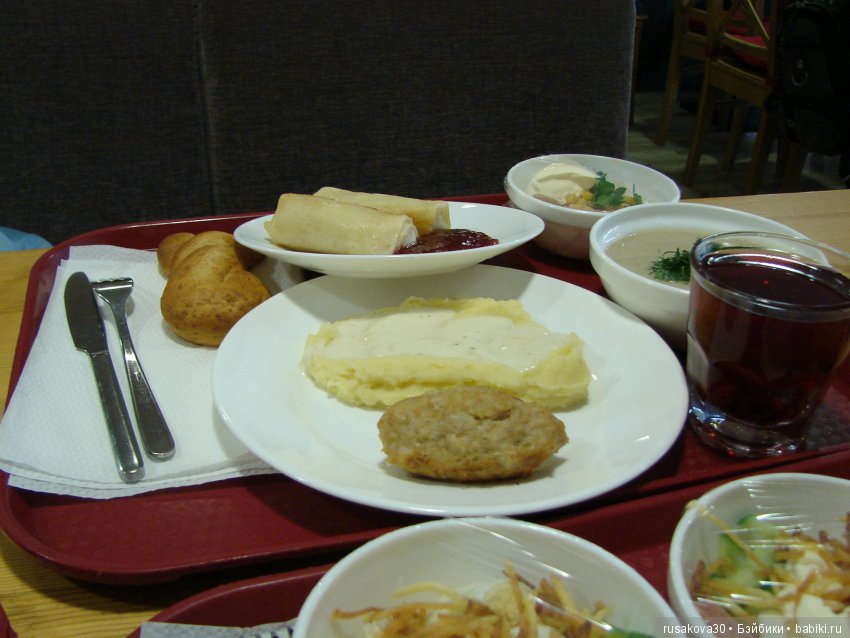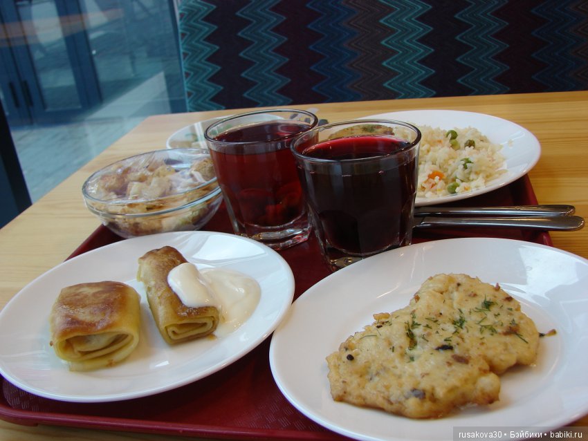 Так что уже в аэропорту мы начали пробовать нашу родную, русскую кухню!