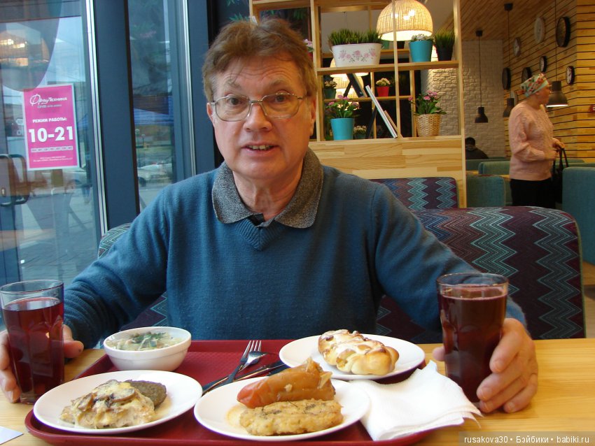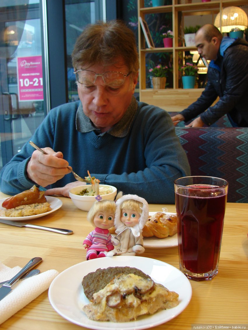 Вечером мы тоже ели, но не много.А днем в кафе ходили.