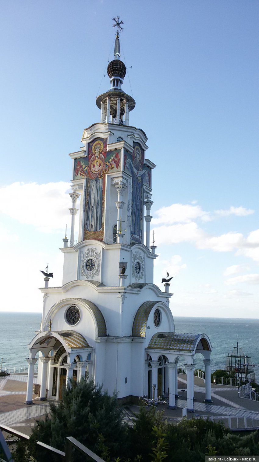 Храм Святи́теля Никола́я Чудотво́рца — по своей высоте храм не имеет аналогов в Крыму. Церковь белоснежным треугольничком видна даже из Алушты. Общая высота храма составляет по разным оценкам до 65 метров. На всех четырех фасадах храма в форму огромного креста вписаны изображения святых. Высота каждого панно 15 метров. В оформлении использованы настоящие корабельные якоря и якорные цепи.