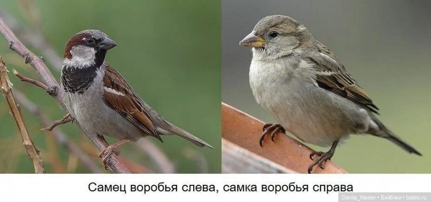 Только вот я идентифицировал воробышков как папу и маленького воробьёныша, потому что у самочек воробья никогда не бывает тёмной шапочки на голове и чёрного пятна на горле\груди.