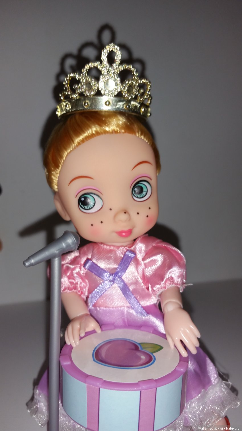 Фигура у Аленки почти идентична Паола Рейна, только добавлено музыкальное устройство (не спрашивайте меня, что оно играет. Я не люблю подобные штуки в куклах, а уж если они внезапно срабатывают!!! Хе-хе, была со мной пара случаев, чуть самой не понадобились памперсы как моим бебикам. Так что кнопки включения надежно теперь фиксируются медицинскими пластырями.)