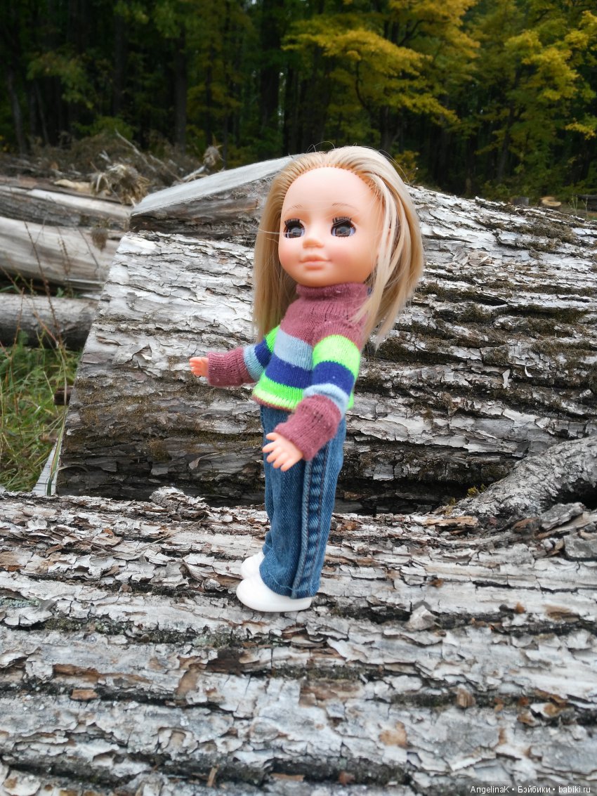 Привет от моей Аськи. Вышли на прогулку, собрали со всех кукол одежку и отправили белокурую кареглазку посмотреть на осень.