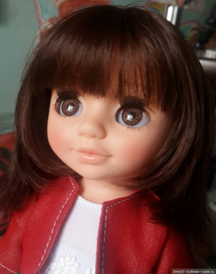 Глаза… Вот тут я поняла, что мне не так в ней, у малышки слегка не равномерно вставлены глазки, а один еще и тормозит относительно другого при закрытии. Я уже читала в топиках, как справиться с косоглазием, но это попозже сделаю.