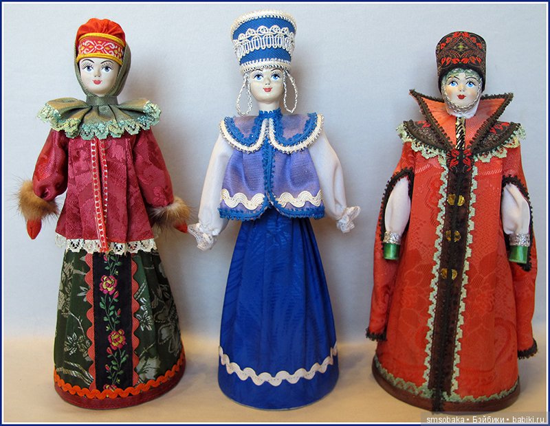 А так дома есть сувенирые петербугские куклы, есть и в русском наряде. Головка просто на картонном конусе.
