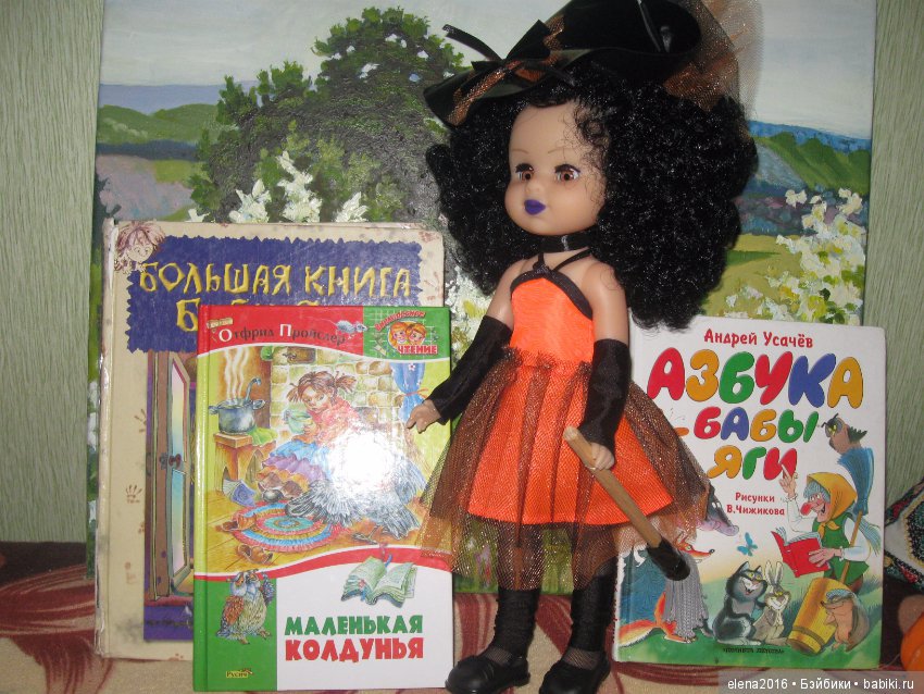 Всем добрый вечер. Хочу показать Ведьмочку Барбелу от Санкт-Петербургской фабрики «Пластмастер». Барбела ее имя «по паспорту», мне оно не очень, и я назвала ее Жасмин. Тут будет много фотографий, Ведьмочка в своем родном наряде и даже с метлой, которая была с ней в комплекте. Приехала Жасмин в простом пакете, без коробки, метелка была примотана к руке скотчем:) Про качество кукол фабрики Пластмастер на Бэйбиках уже писали, помню, конечно, это не такой ТРЕШ как «Мир кукол», но все же хуже чем белорусские от «Страны кукол». У меня живет одна белорусочка — копия Паолки, вполне мяконькая девочка с хорошими волосиками, это конечно не винил, но что — то похожее. Как нибудь ее тоже покажу. У Жасмин мягкая голова и ручки, остальное тело — твердый такой полиэтилен, пятки — прозрачные и продавливаются внутрь. Шикарные волосы из двухцветных завитушек к сожалению прошиты не крепко и вылезают, так что лучше их не трогать. Но это мы можем не трогать, взрослые, а как должен ребенок играть -не понятно, они же любят расчесывать. Костюм ведьмочки очень милый, тут не к чему придраться — даже гетры и колготки в сетку, шляпка — огонь. Этот молд кукол у Пластмастера не самый может миленький на свете — но как раз для Ведьмочки весьма подходит на мой взгляд. Размер Паолки, тело тоже, но есть отличительная черта — Жасмин прекрасно стоит сама, что в обуви, что без, чем Паолки похвастать не могут, сколько бы версий тела им не делали. Жасмин досталась мне с серыми глазами — очень красивые, есть еще варианты с карими и голубыми. Вобщем посмотрите на эту лялю — чем — то она меня зацепила, есть в ней харизма и очарование. Может кто — то захочет поселить у себя ведьмочку — их у Пластмастера на данный момент четыре варианта: две с кудрявыми волосами и две с прямыми.