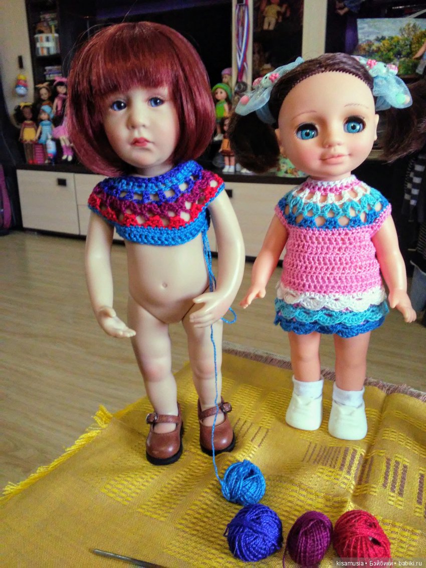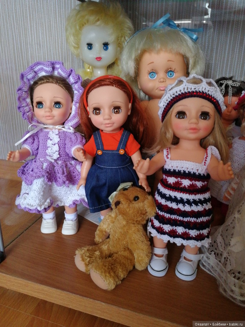 Как и в прошлый раз, я не стала покупать описание к вязанию модели. Попыталась разобраться сама. Возможно, не всё получилось как надо. Но мне результат нравится. Асечки заиграли в новых платьях другими красками! Надеюсь, что мои нарядницы понравятся и вам! Ждём ваших любимиц в гости!