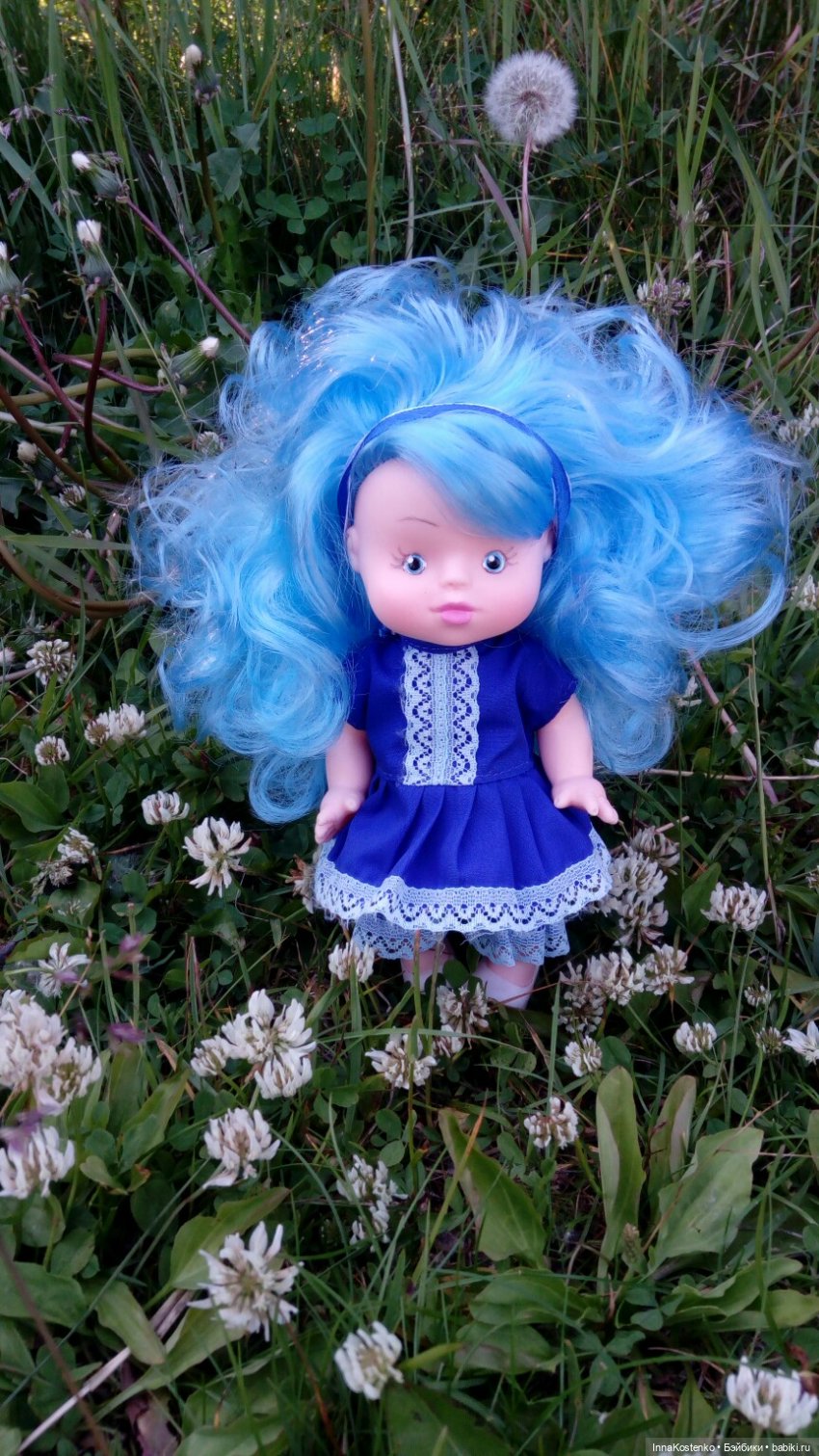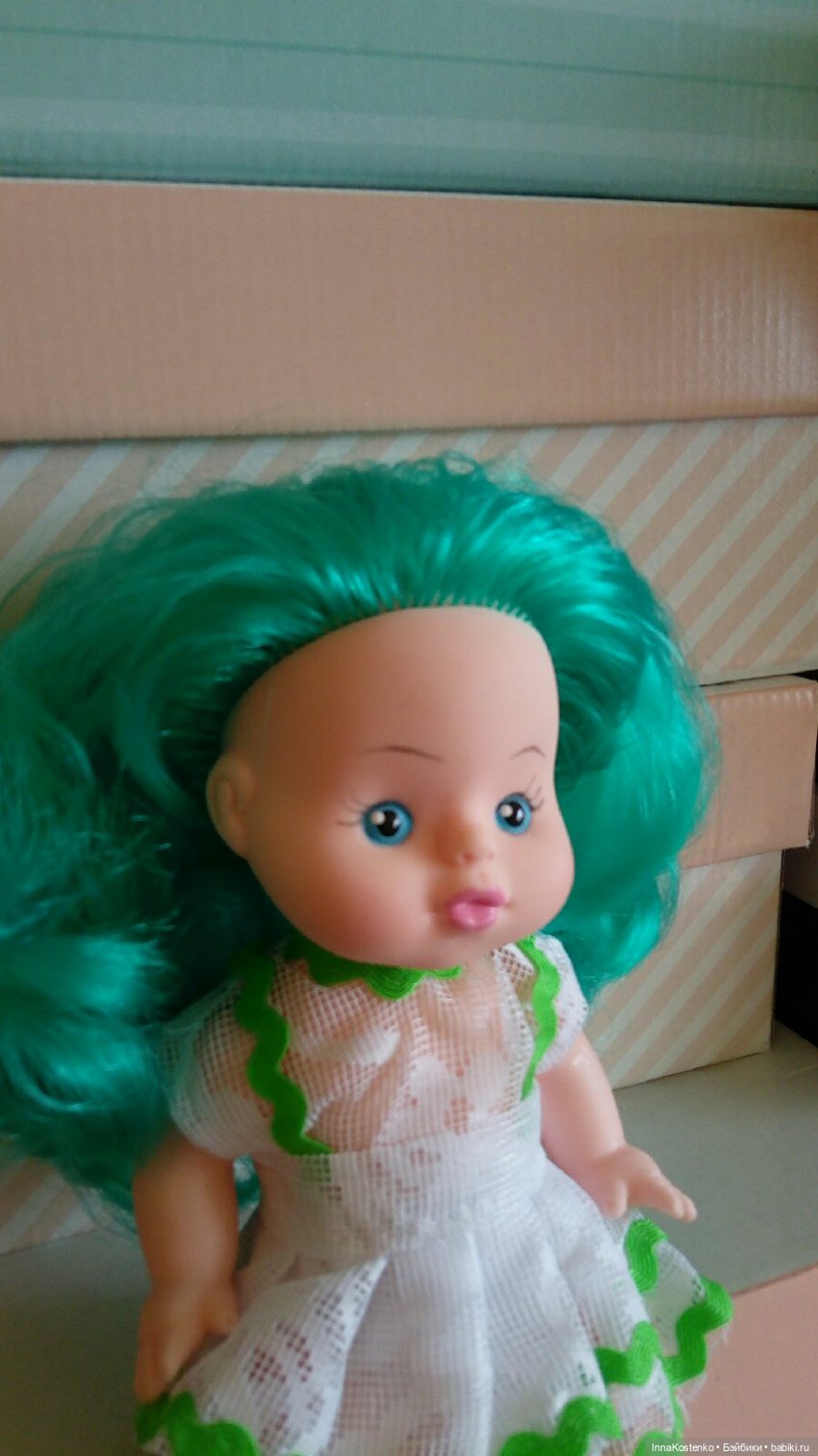 Из той же линейки ивановских малышей 20 см у нас поселились Мальвина, Майя, и необычная Стеша с густой красивой шевелюрой и фантазийным цветом волос.