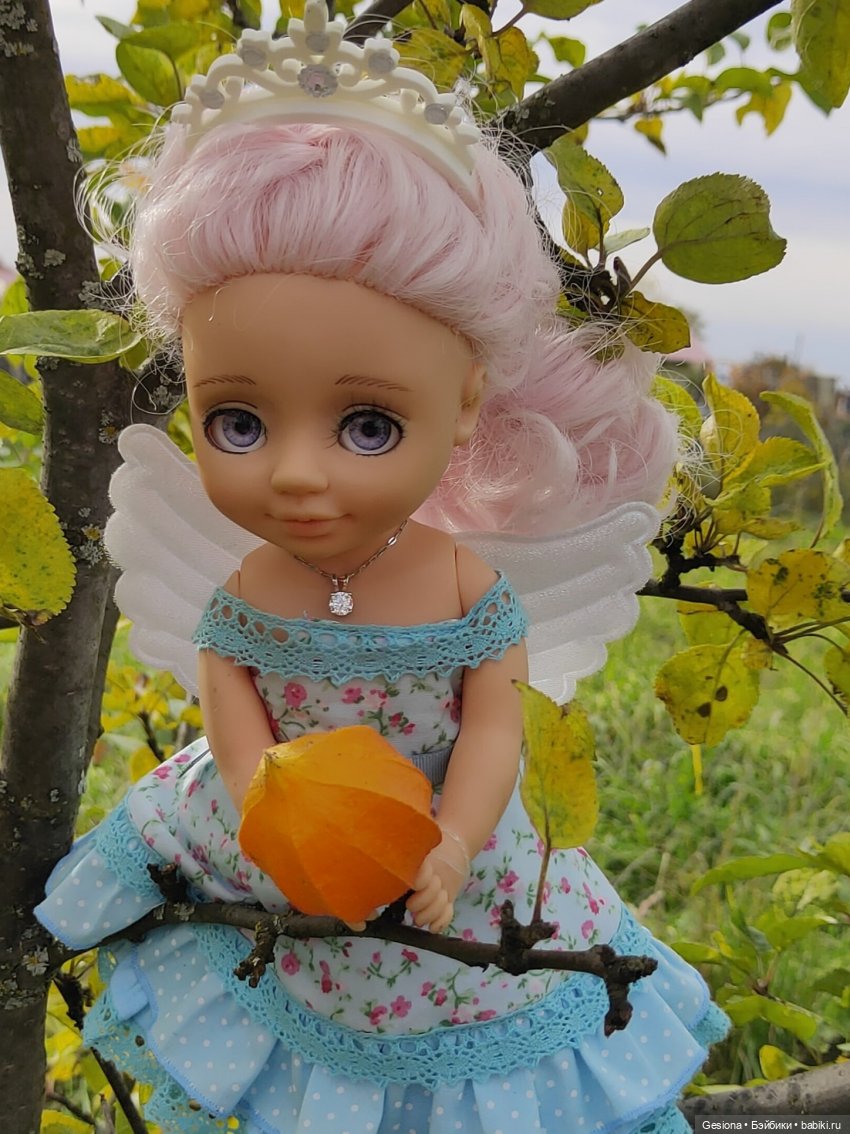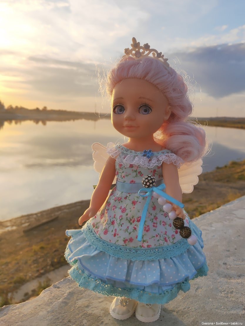 Зато вторые (16мм) идеально смотрелись. И вот с этим чудесным игривым взглядом Асенька стала моей маленькой любимой малюткой. Связала ей платьице. Прикупила новый наряд, и девочка вовсе «заиграла красками».