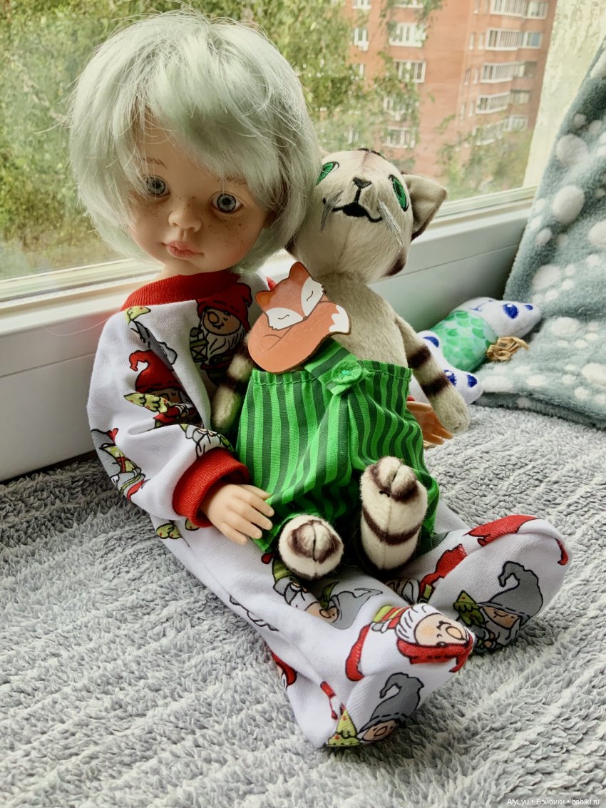 Митя говорит несколько фраз. Я не очень люблю говорилки у кукол. Но что делать. Голос у него приятный.