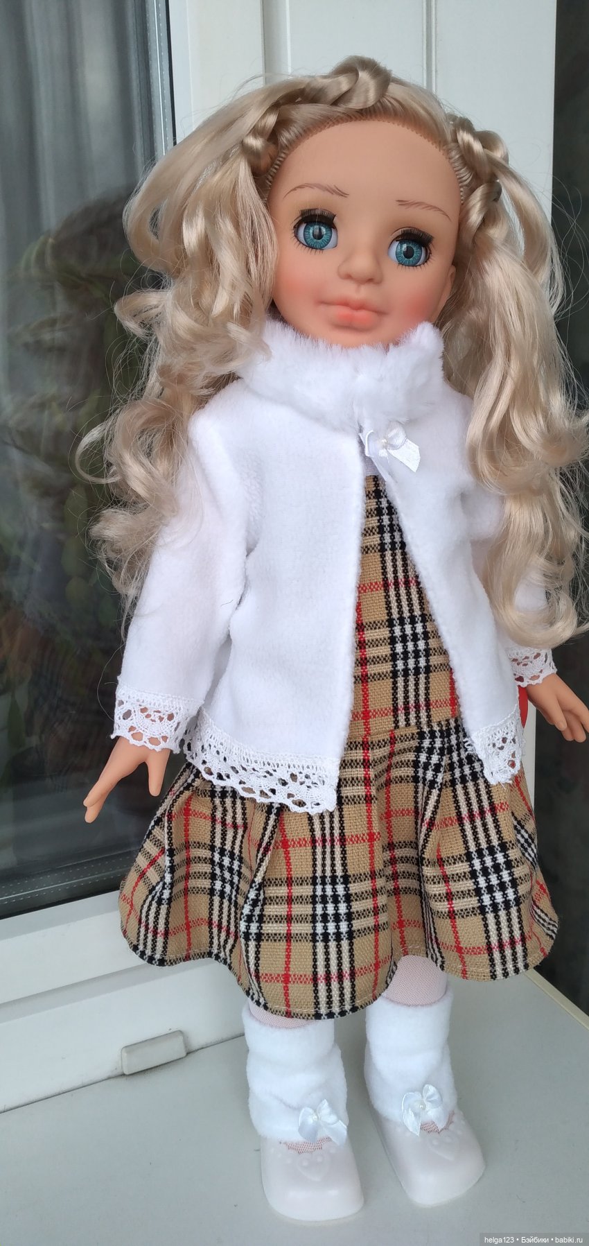 У Эсны такое живое, словно «дышащее» лицо, как если была была ожившей акварелью. Вся куколка точно светится изнутри. Мне очень нравятся её огромные сказочные глаза, полные озерной свежести. Очень нравятся её шёлковые густые волосы, собранные в красивый свободный боковой хвост, точь в точь как было модно носить, когда мне было лет 8. Очень нравится её одежда, все аккуратно выполнено и материалы приятные на ощупь, хорошо подобран ные между собой. Особенно мне нравится её шубка, вся такая искрящаяся, точно снег на ярком солнце. В целом, меня не покидает ощущение, что моя Эсна это восплощение Весны! Настолько она вся лёгкая, свежая, воздушная!