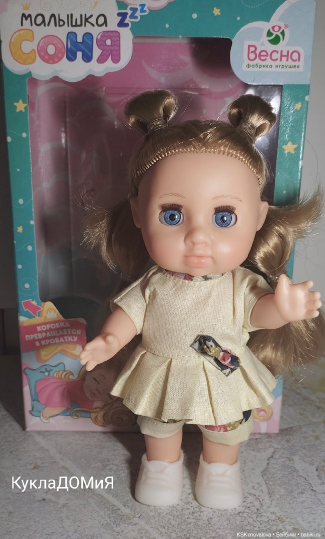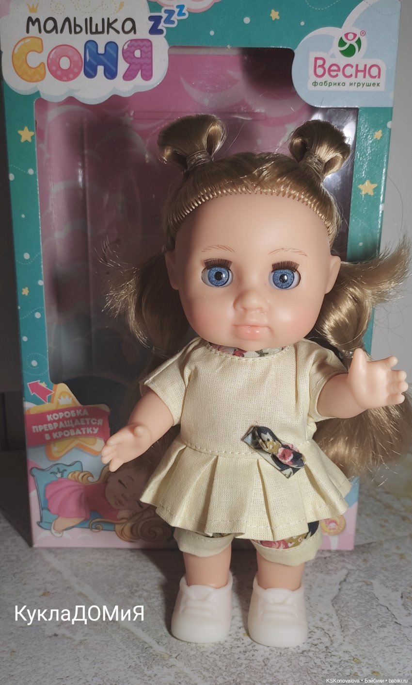 А зацепила нас, вроде бы давно выпущенная, куколка Соня! Но вот залипли мы на ее новый наряд и не смогли пройти мимо. Ведь куколка заиграла новыми возможностями! Этот наряд так ей идет, что мы не удержались и приобрели себе этого маленького ангелочка, херувимчика, пупсика себе домой. Вот таким образом к нам в дом пришла Весна. Такое румяное кукло-дитя, добрая девочка с милыми чертами лица и пухленькими щечками.
