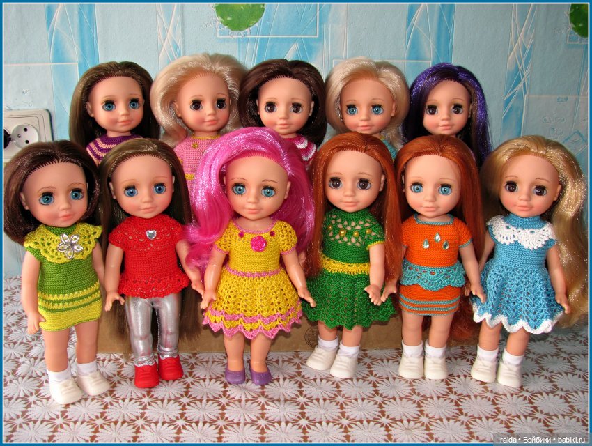 Снизу: мягкая Саша, Элла(но не уверена, платье точно от нее, но вроде Элла рыженькая.а так с таким молдом и Лиза есть и Герда), Алла, Митя, Эля и Сонечка.
