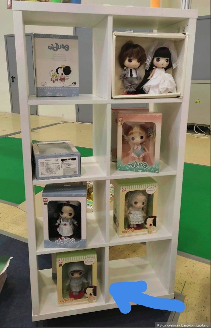 А потом, когда полочки опустели она с ностальгией исполнила свое желание — постоять на кукольных полках как в магазине!