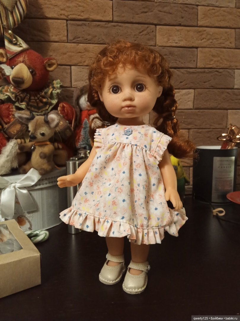 Достала я из коробки платьишко. Заказывалось оно для Веснушки Люськи. Но она такой сорванец и в платье мне не очень понравилась. Переодела её в футболку и шорты.