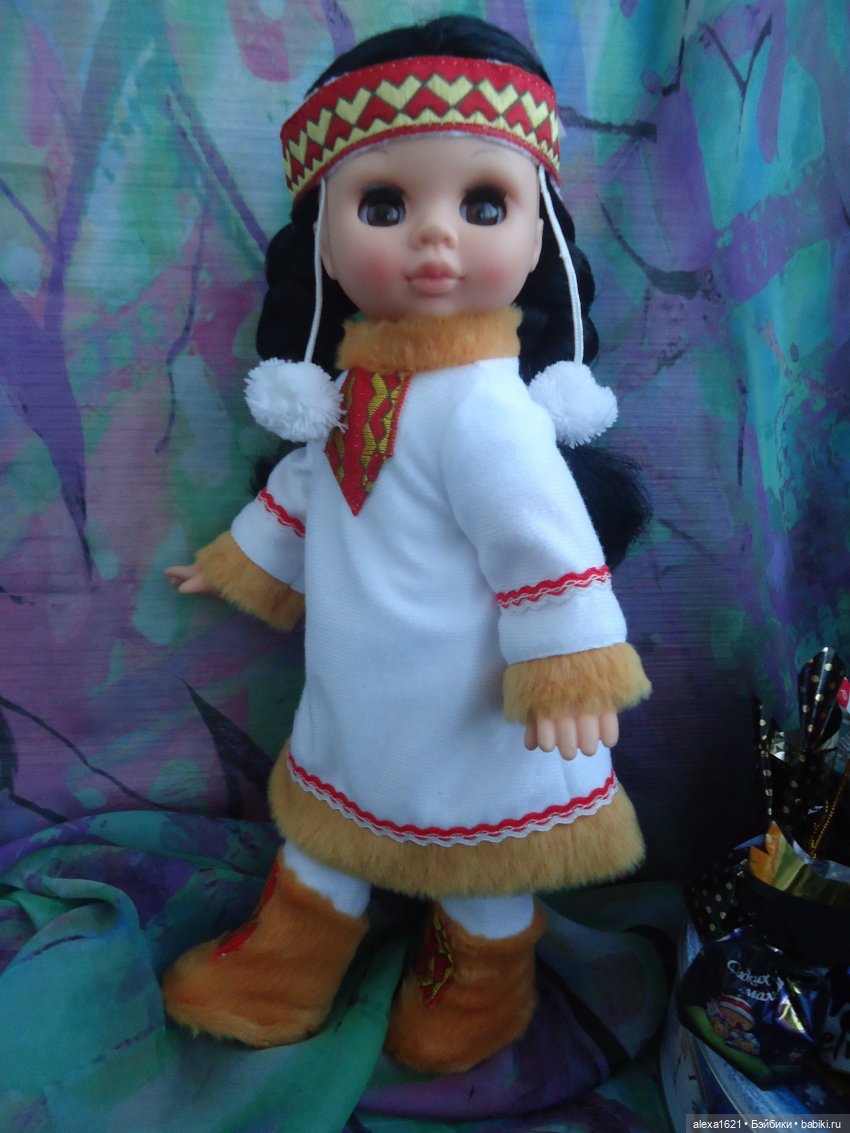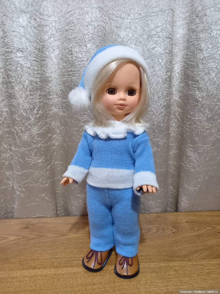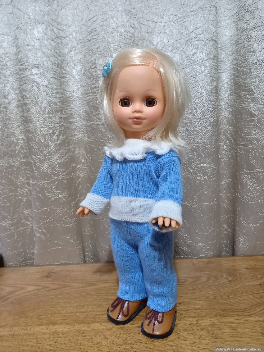 Очень нравится мне этот вязаный родной костюмчик на кукле. Только вот обувь сюда ой как просится…