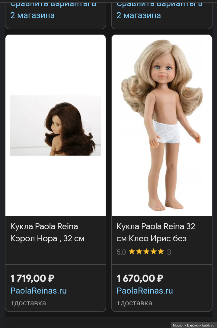 Вот так я загуглила. А потом на сайт сходила. Вы оказались правы на счёт цены. Но если кому-то больше Паолки нравятся, то разница не критичная. Всё же кукол покупают по любви, а не по ценнику. Ценовой сегмент близкий.