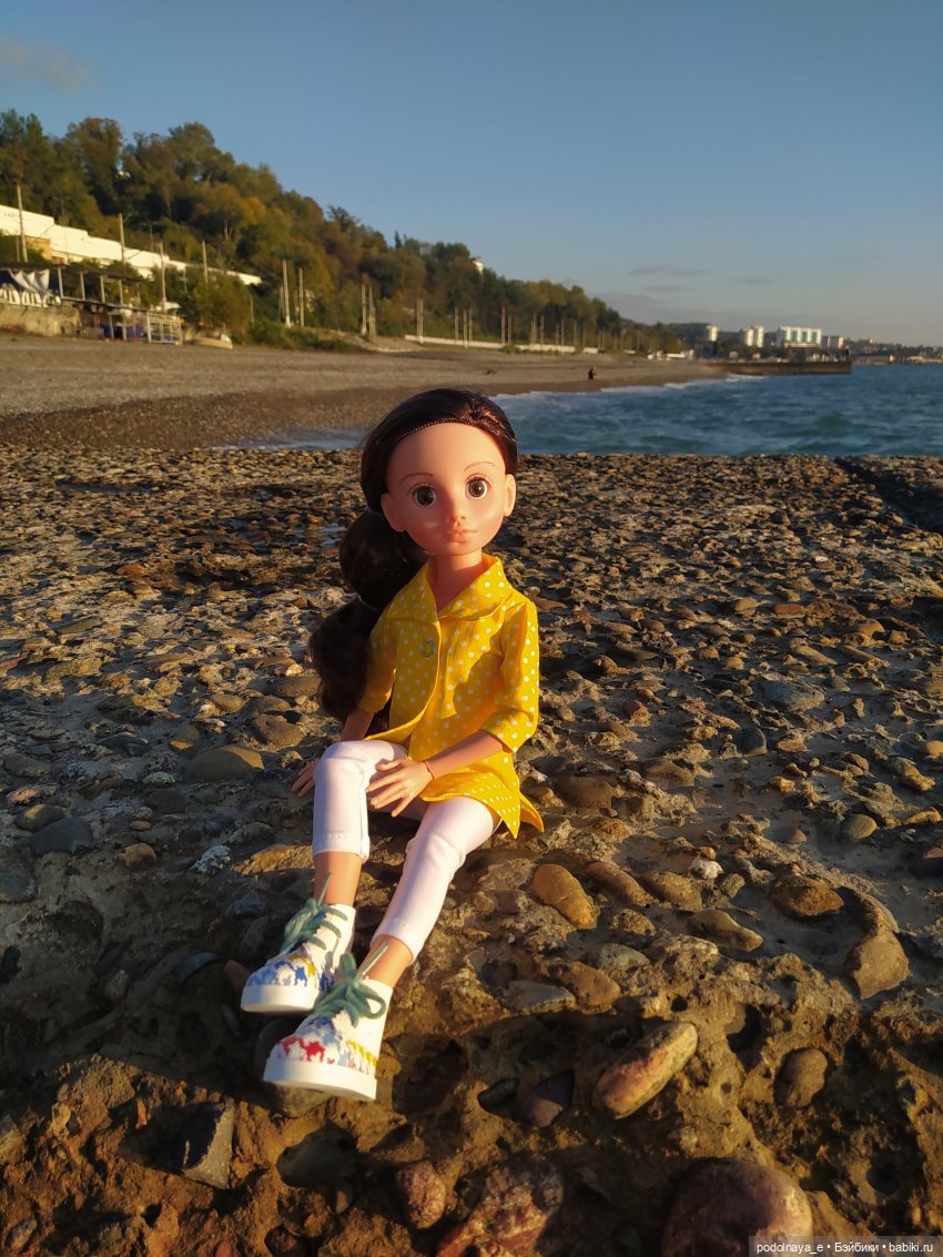 Выбирала между Северным сиянием и Кристальным морем, но в итоге за карие с зеленцой глазки и самые удачные на мой взгляд ауты (какие же у неё премилые цветные кедики!) была выбрана путешественница к озеру Байкал.