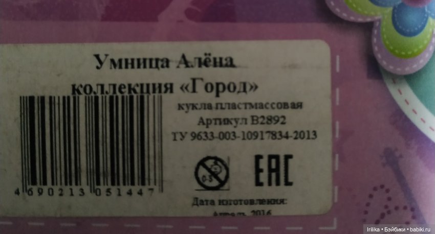 Алена у меня из серии «Город» на коробке написано было.