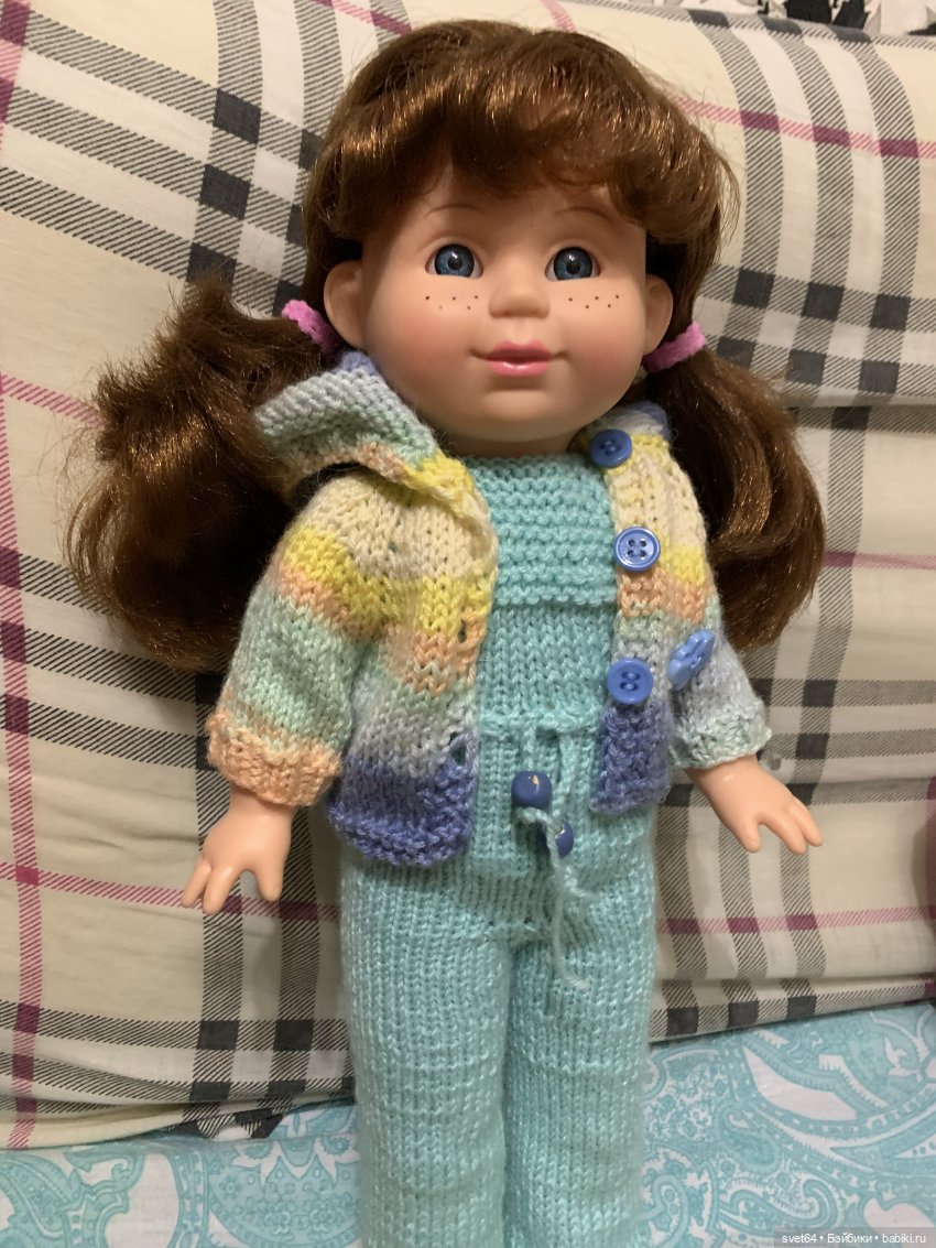 Одежда на девочке не очень понравилась, поэтому мы переоделись. Платье подошло от куклы Кармен Гонсалез, а сандалики одолжили у Анфисы цвергназе. И даже трусики нашлись.