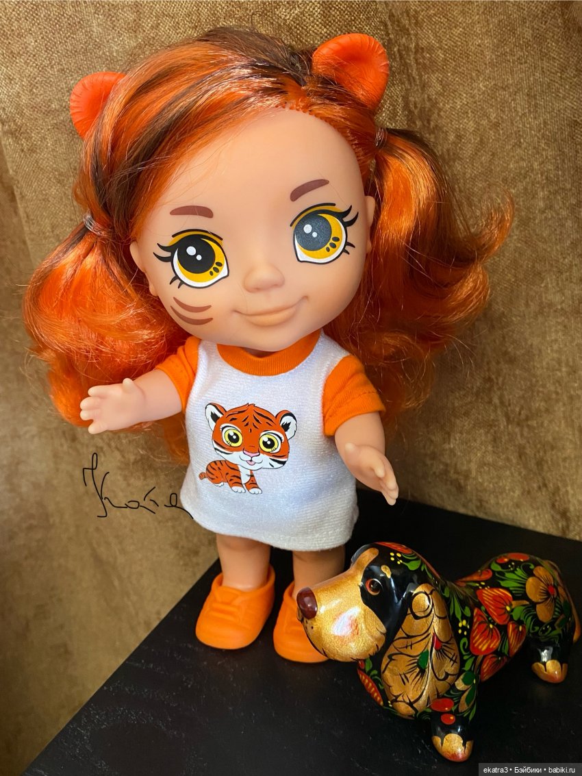 Третья малышка — тигруша Рита! Ушки как у котёнка, полосочки на щёчке, глазки с тигриным «разрезом» и ровные бровки.
