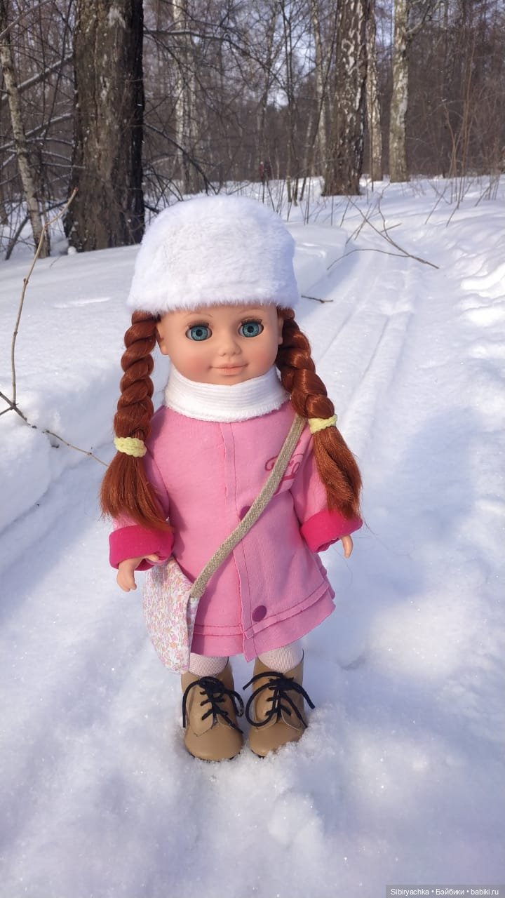 Здравствуйте, дорогие друзья!Вы уже знакомы с моей куклой Аннушкой фабрики «Весна». Несколько дней назад девочка в образе Снегурочки гуляла в лесу. Наряд у неё просто чудесный — весь белоснежный, как первый снег в лесу. Он состоит из платья, колготок, шубки, украшенной красивой вышивкой, рукавичек, шапочки и сапожек. Аннушка отлично смотрелась среди бескрайних снегов сибирского леса.