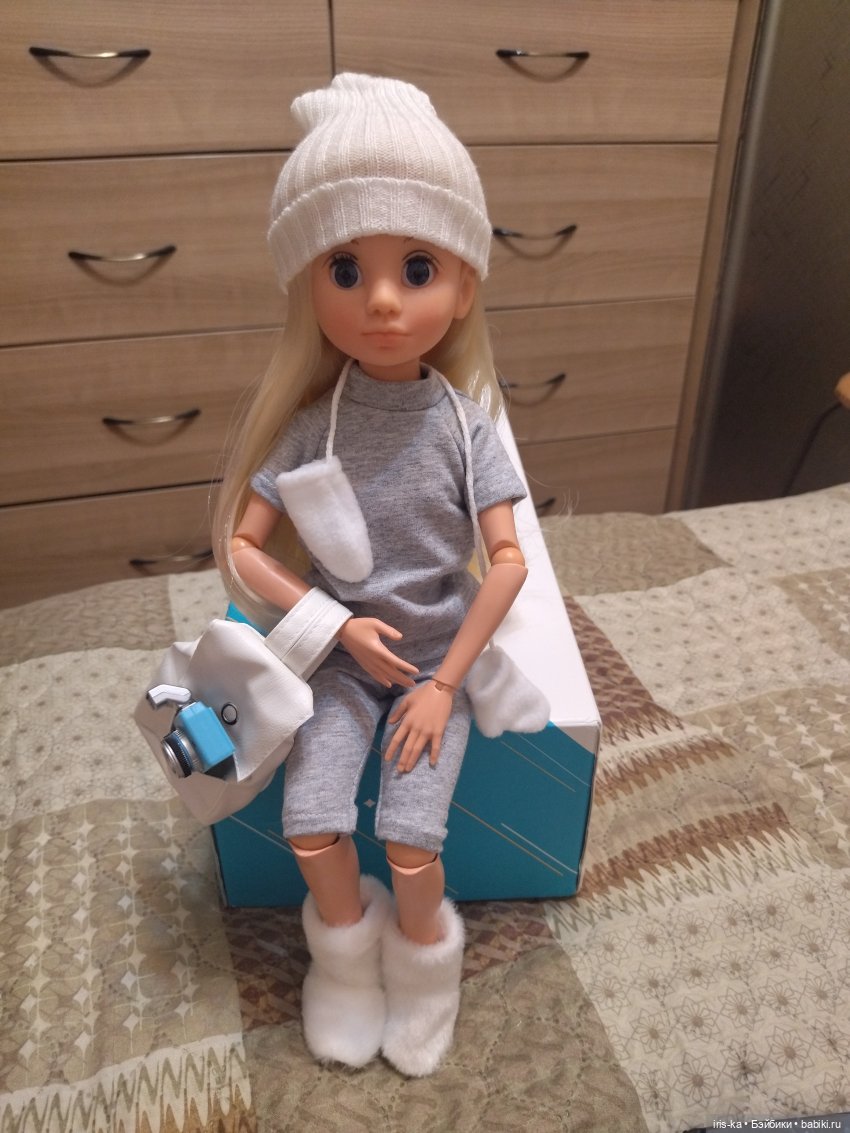Для фабрики «Весна» это необычная кукла — шарнирная. Тяжёленькая, приятная наощупь. Тонкая, изящная. Вживую кукла мне очень понравилась. Жаль, что нет туфелек. Из обуви только меховые зимние сапожки. Здорово что есть несколько комплектов одежды. Но хотелось бы ещё и платьице. Коробка понравилась — удобная, вся одежда и аксессуары аккуратно разложены. Мне нравятся хорошие родные коробки, в которых можно хранить куклу и одежду для неё.